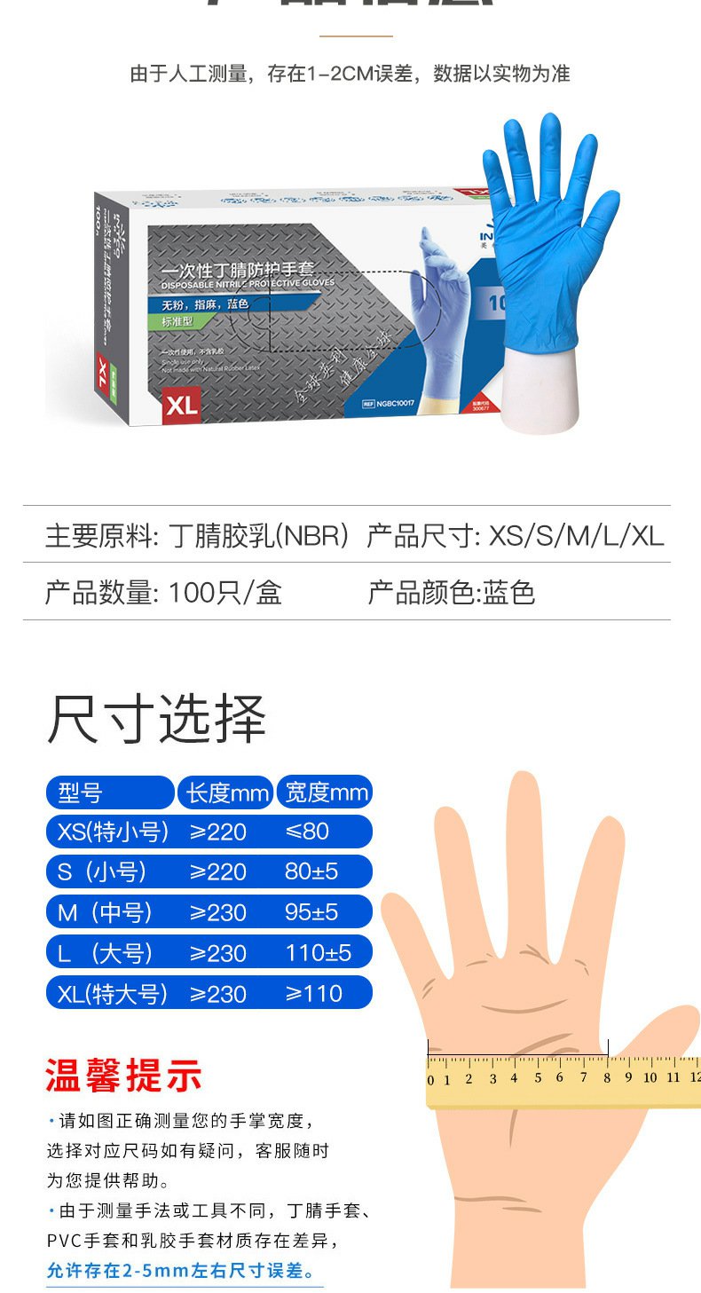 英科一次性丁腈手套工业防护手套无粉高弹耐磨劳保手套标准