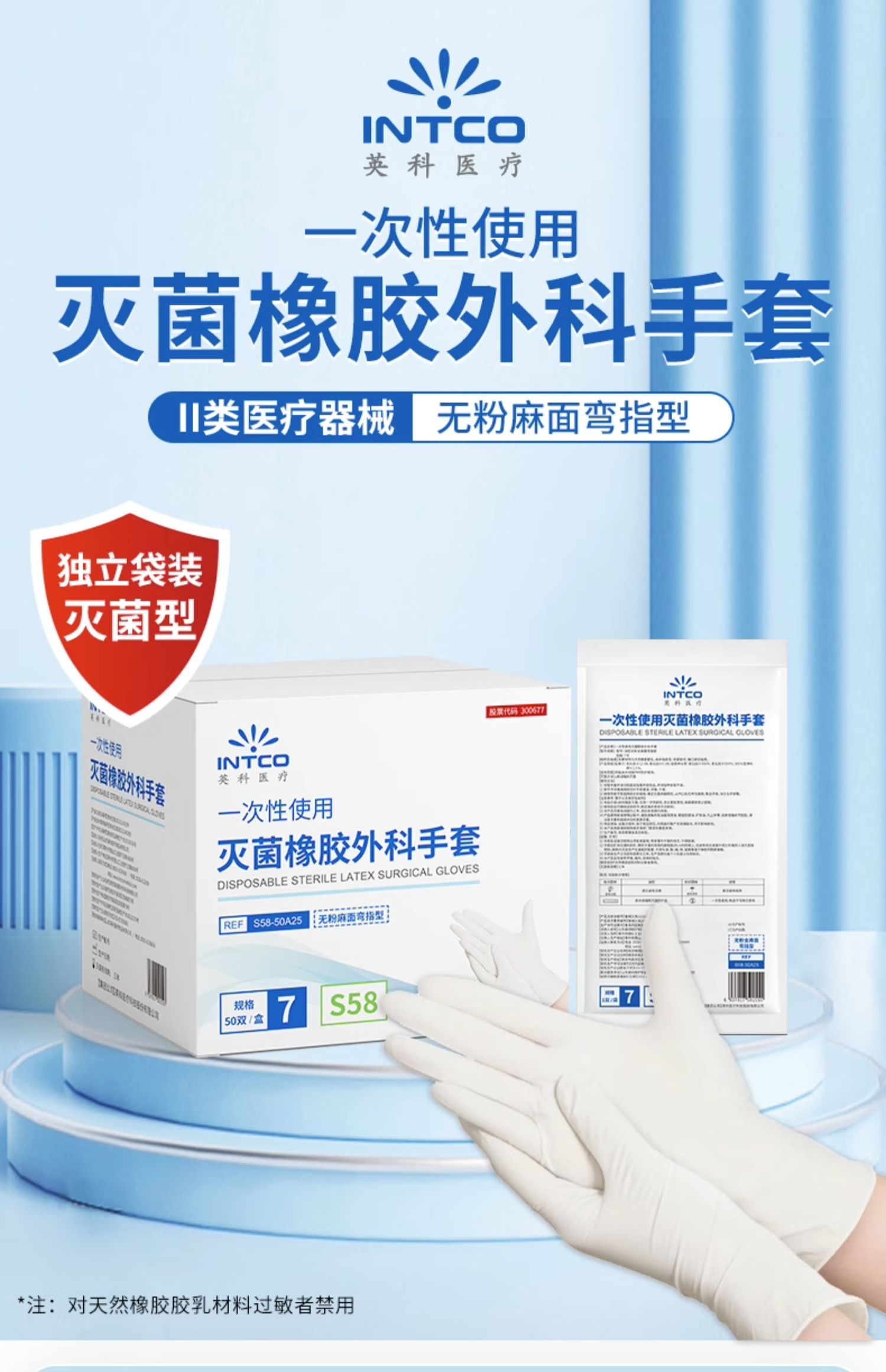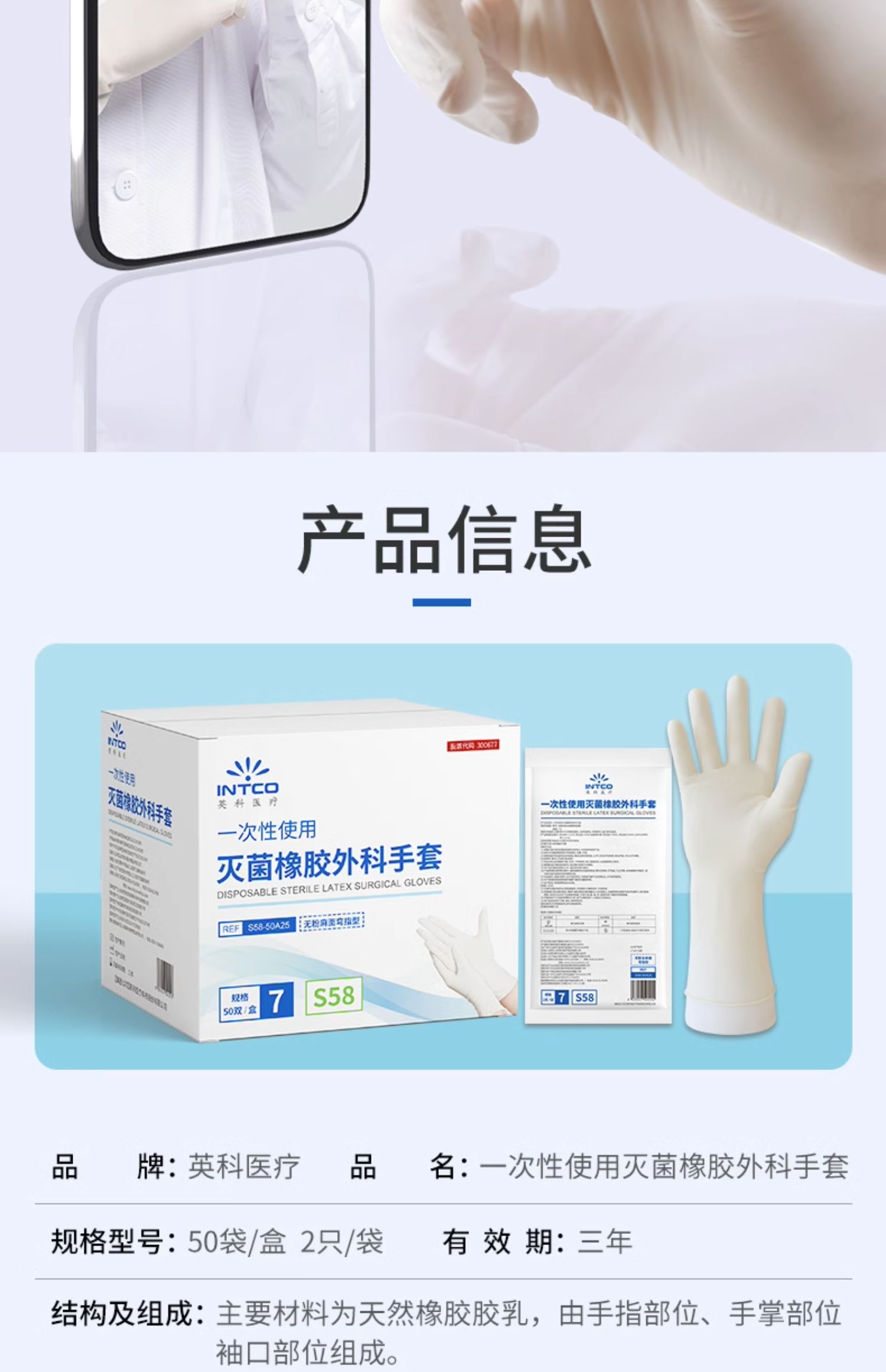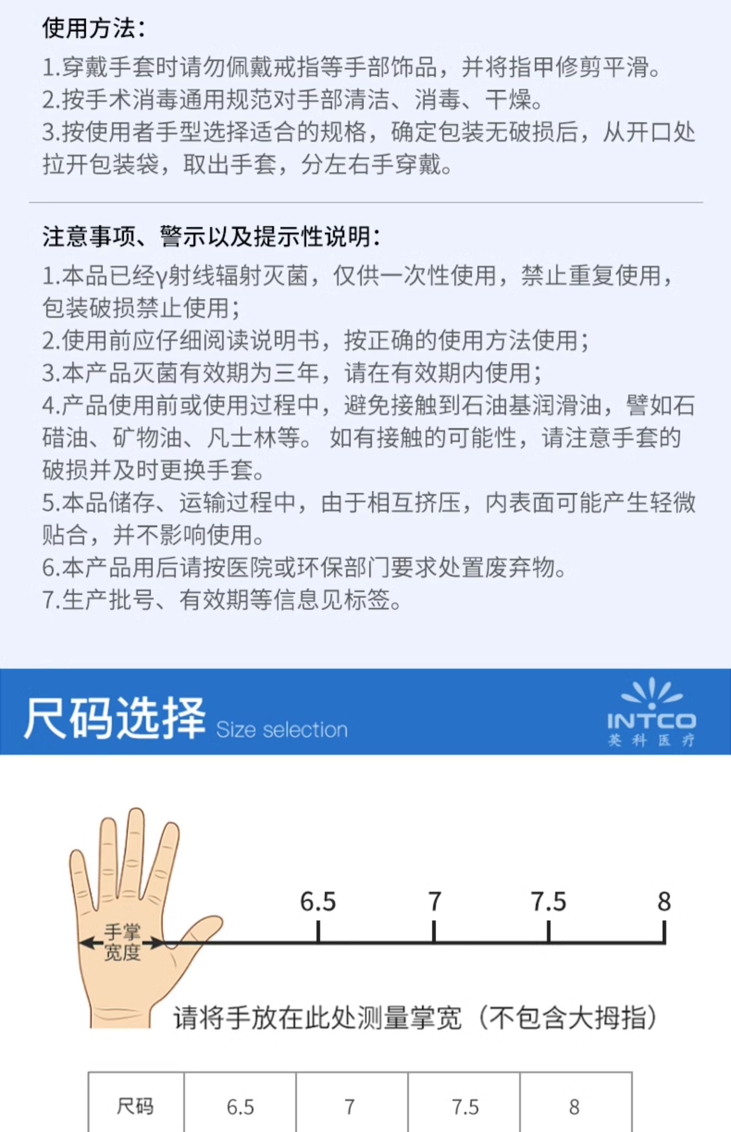 英科一次性灭菌橡胶外科乳胶手套医用医院使用手术家用手套