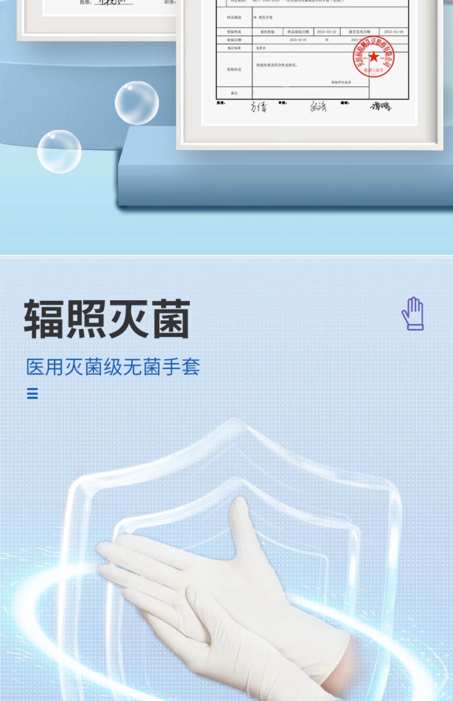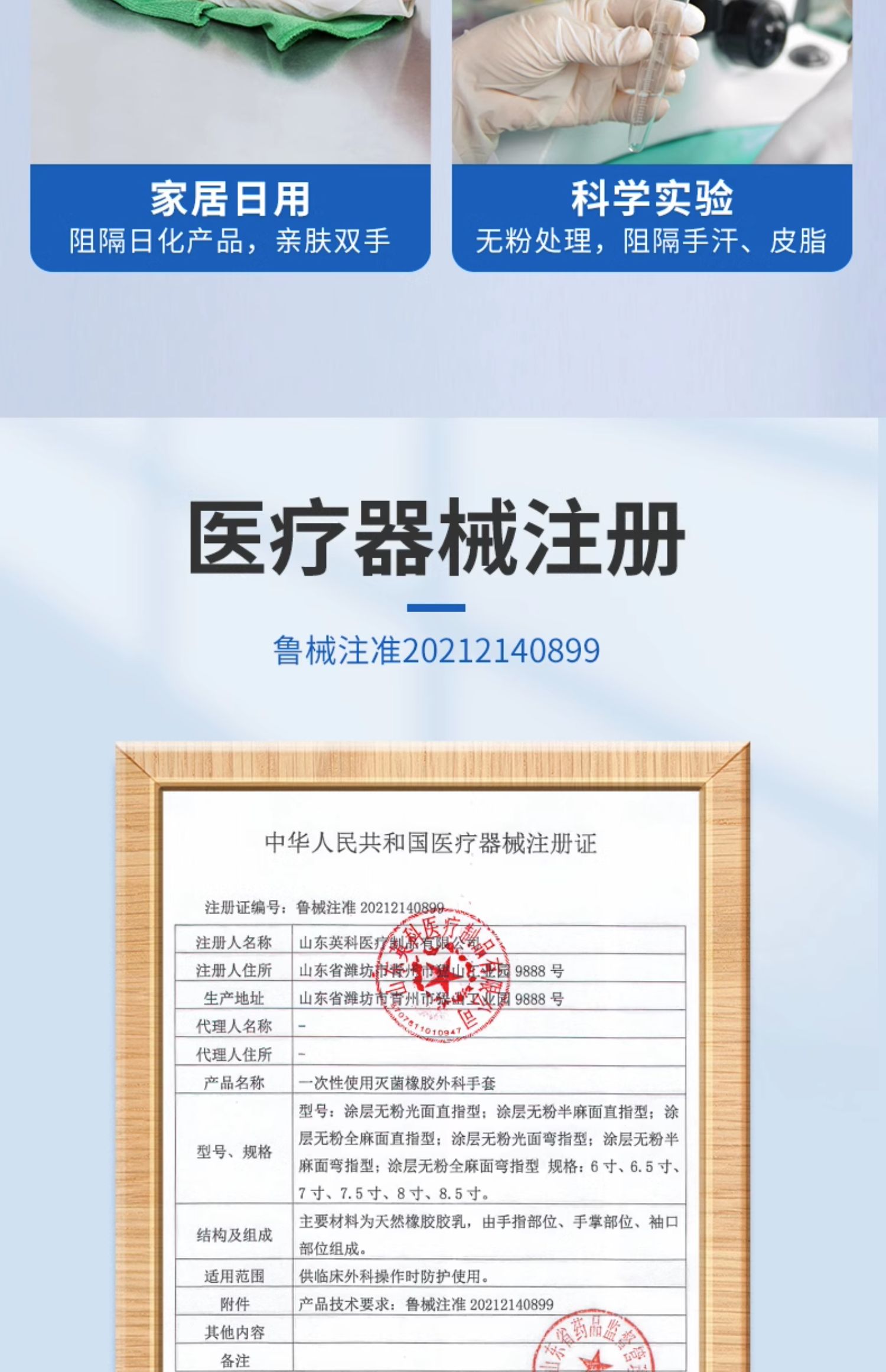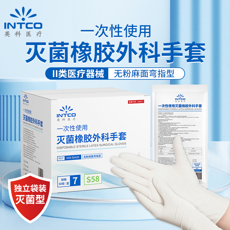 英科一次性灭菌橡胶外科乳胶手套医用医院使用手术家用手套