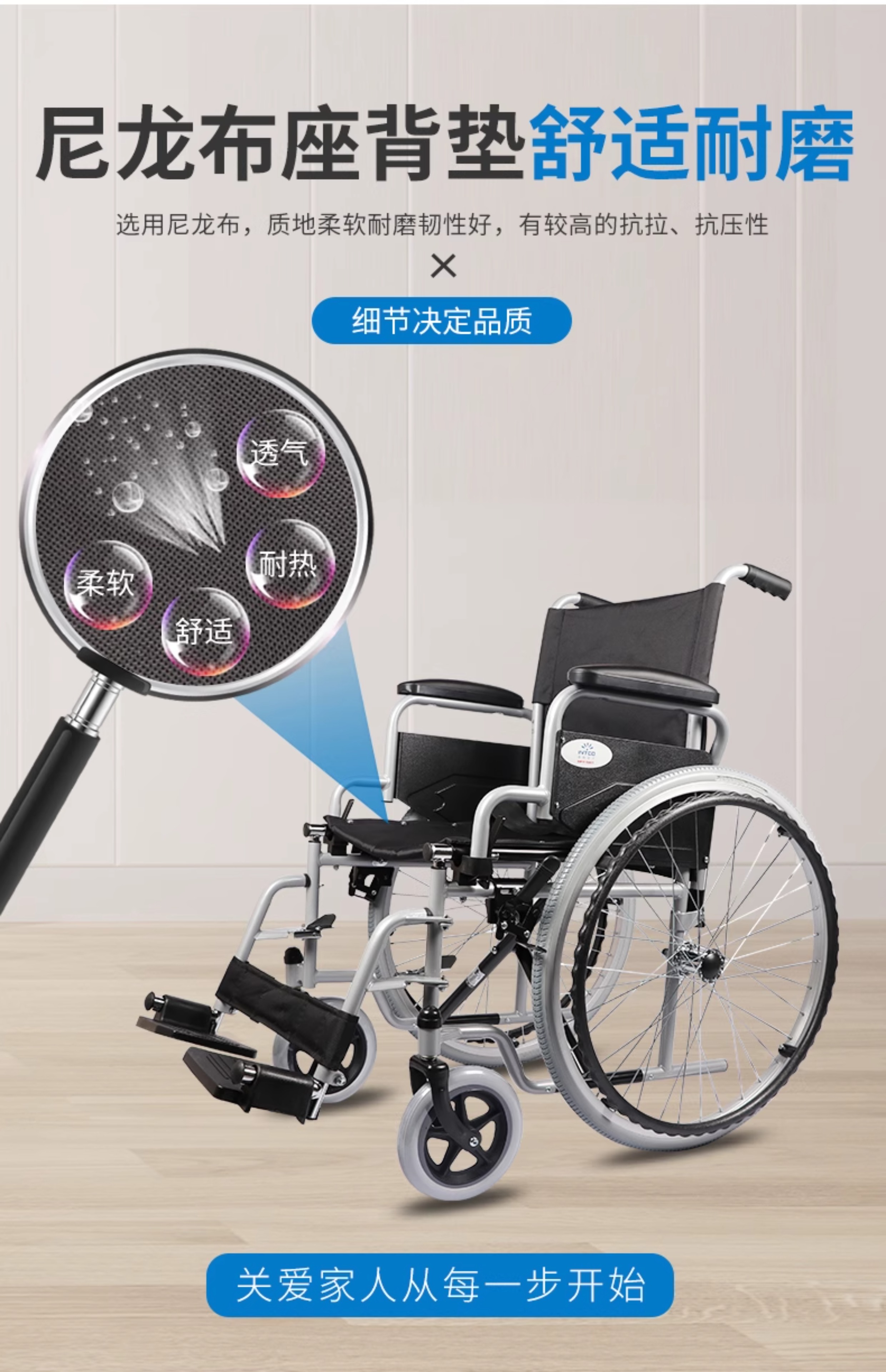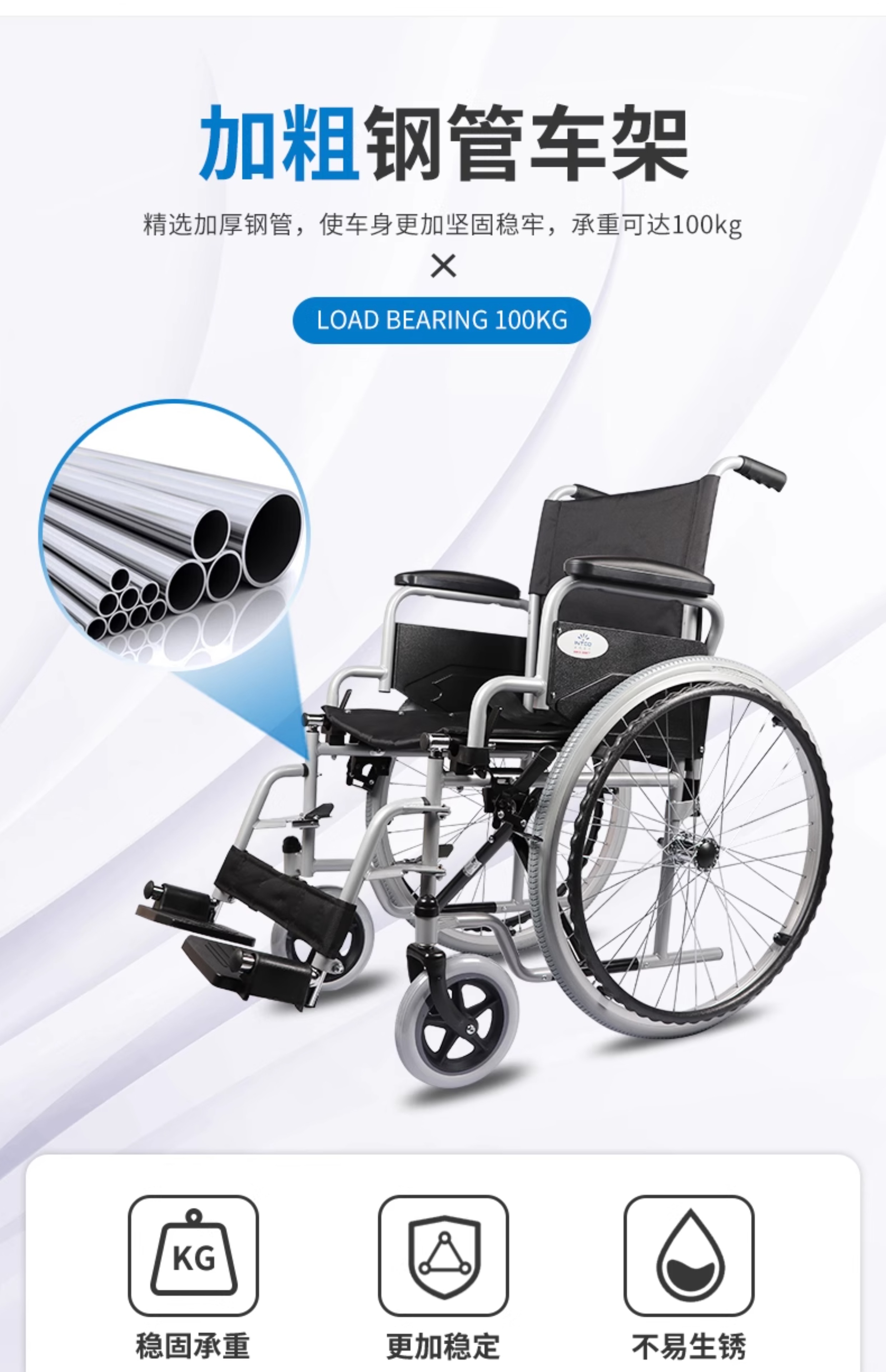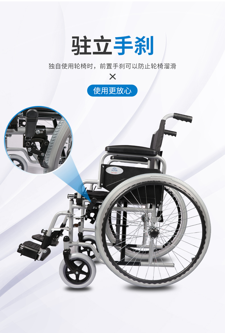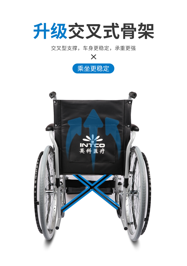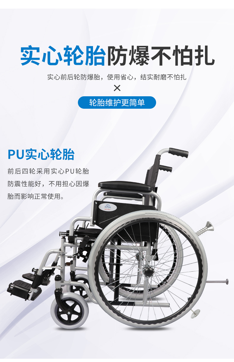 英科医疗 手动轮椅钢管加固耐用免充气胎轻便老人折叠代步轮椅