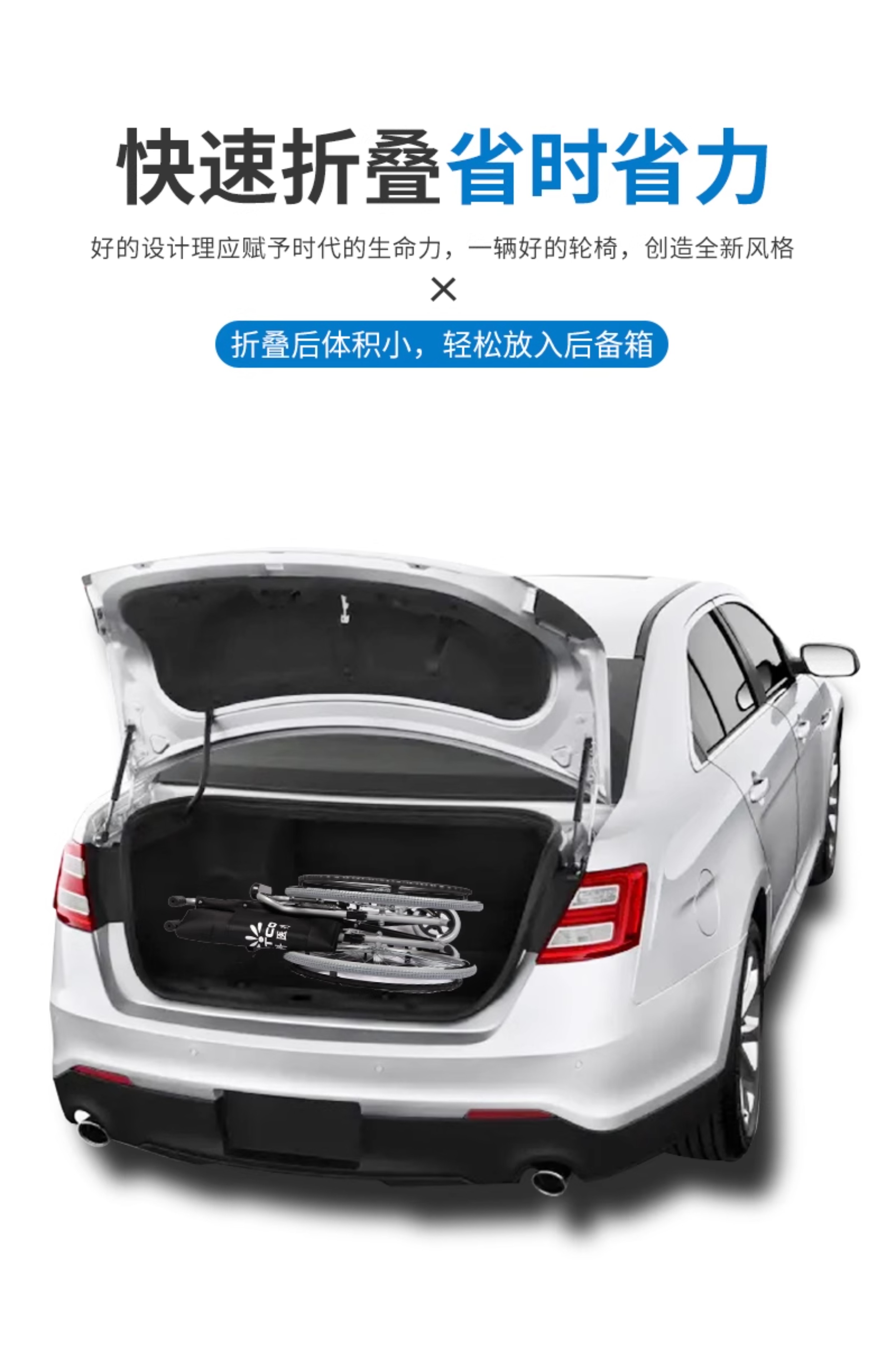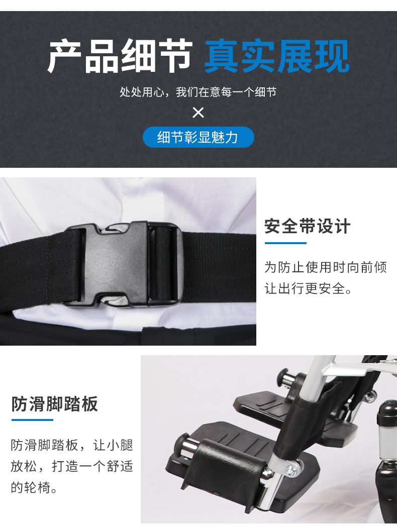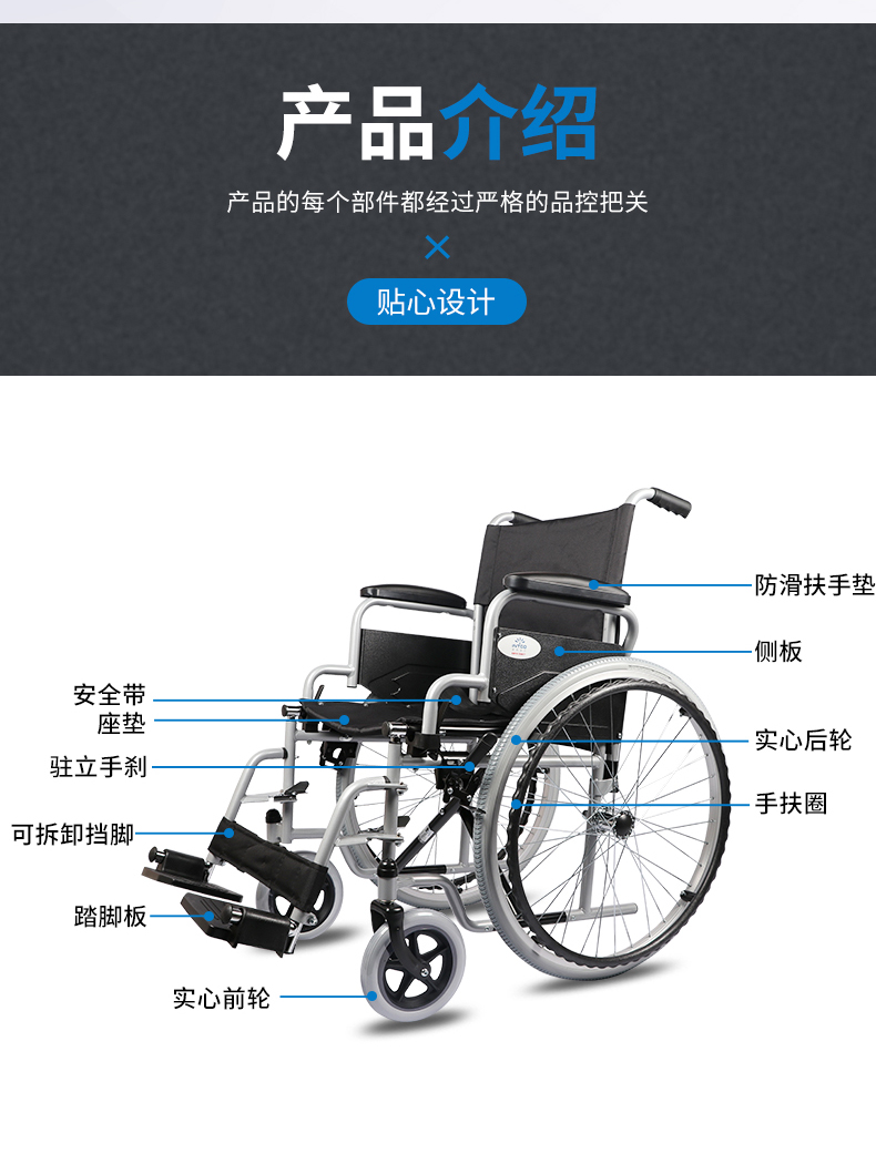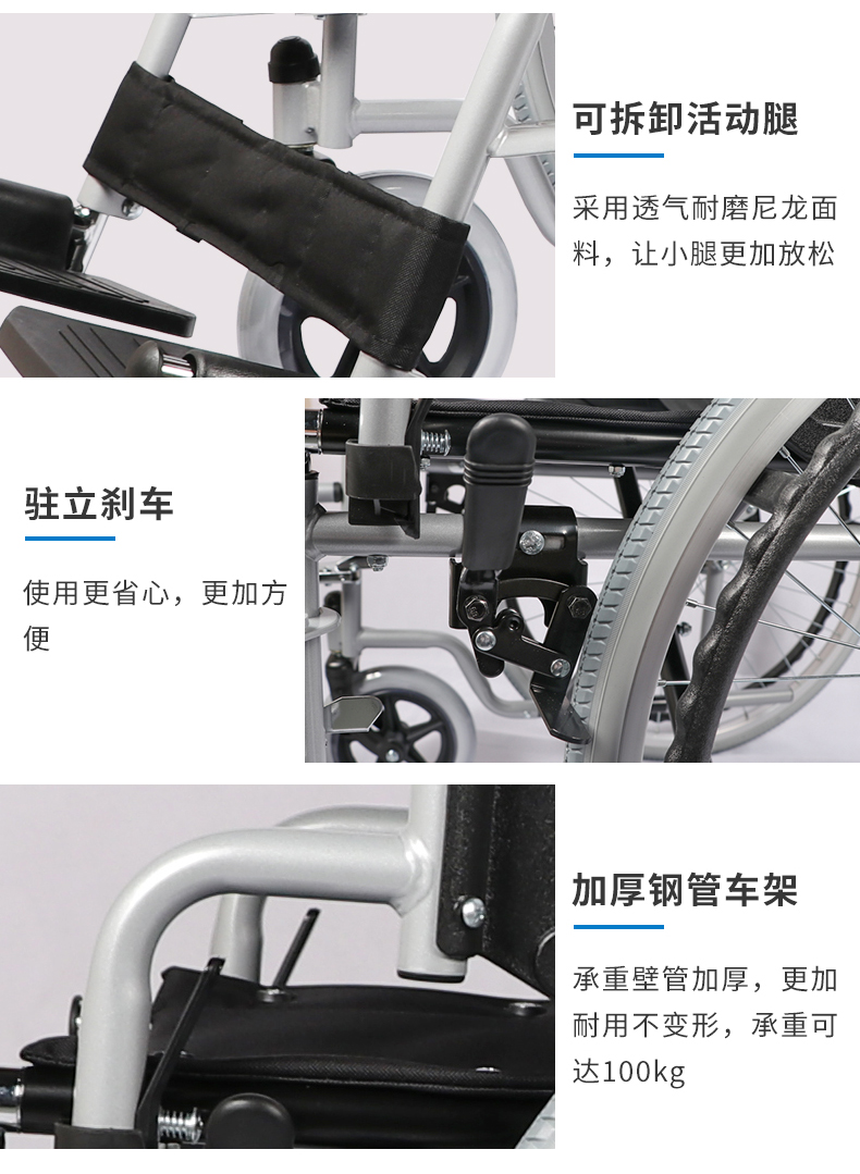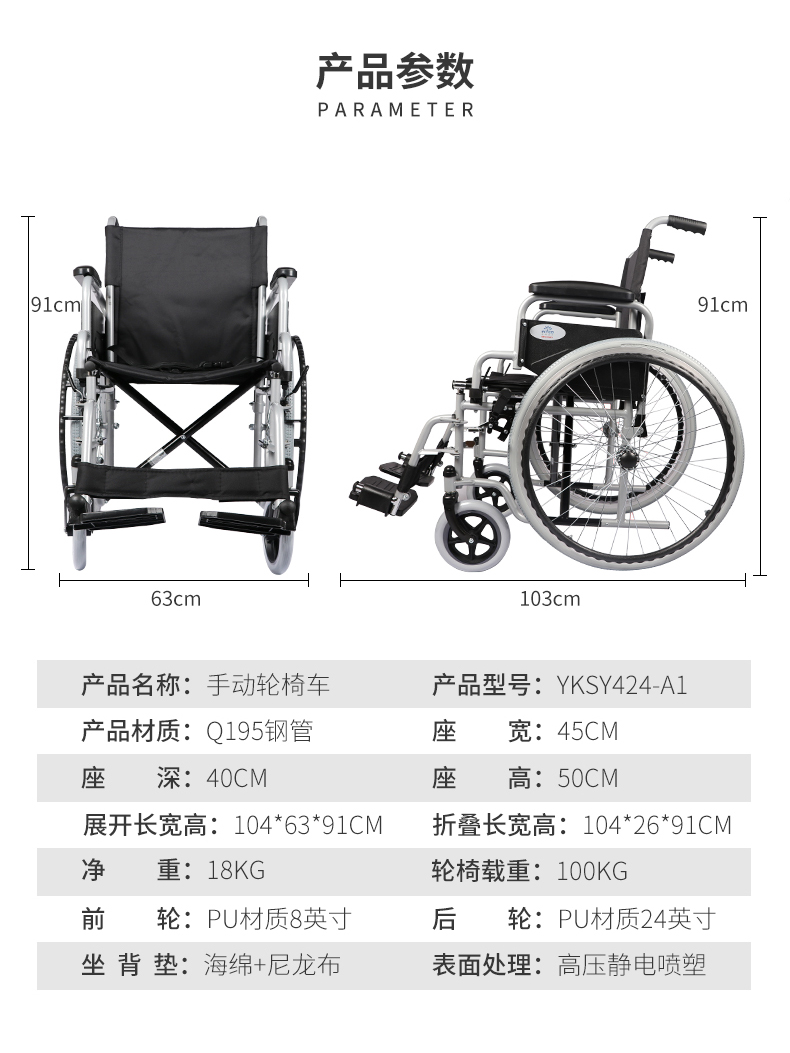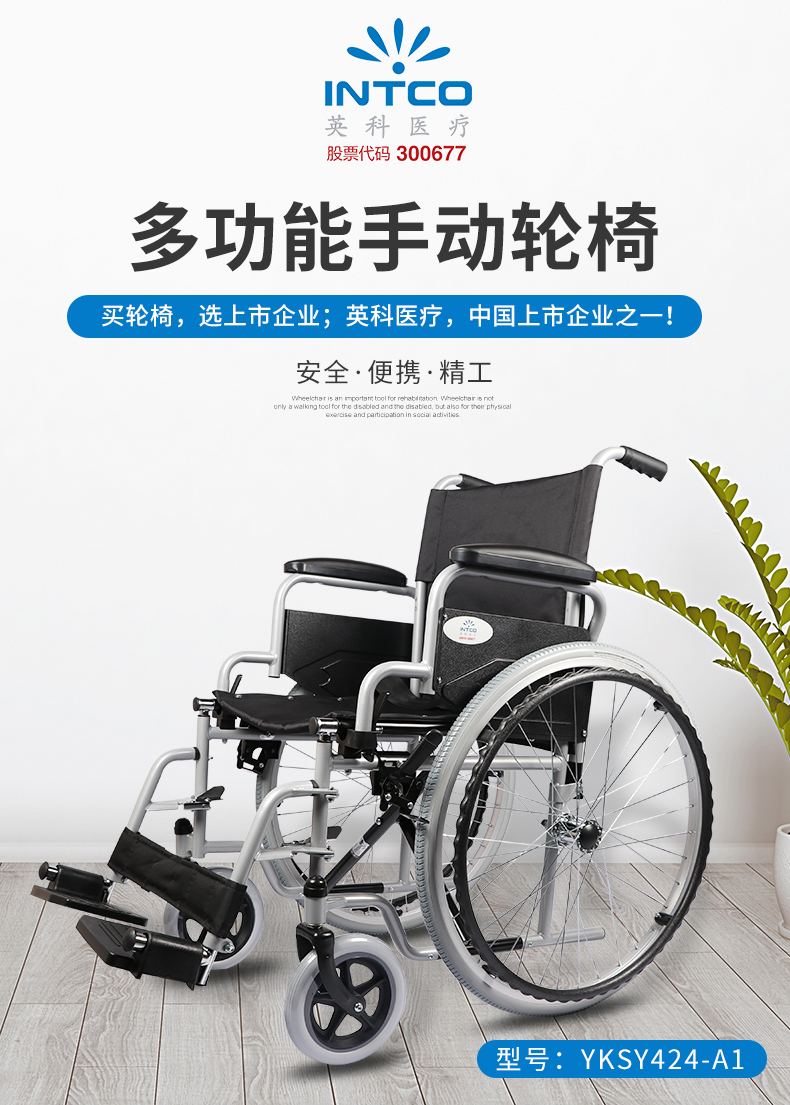 英科医疗 手动轮椅钢管加固耐用免充气胎轻便老人折叠代步轮椅