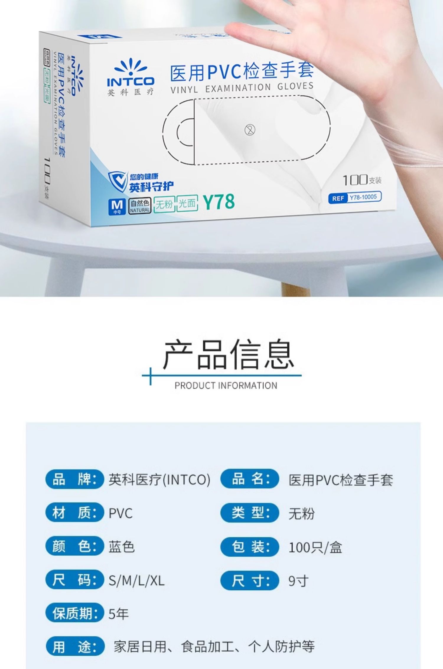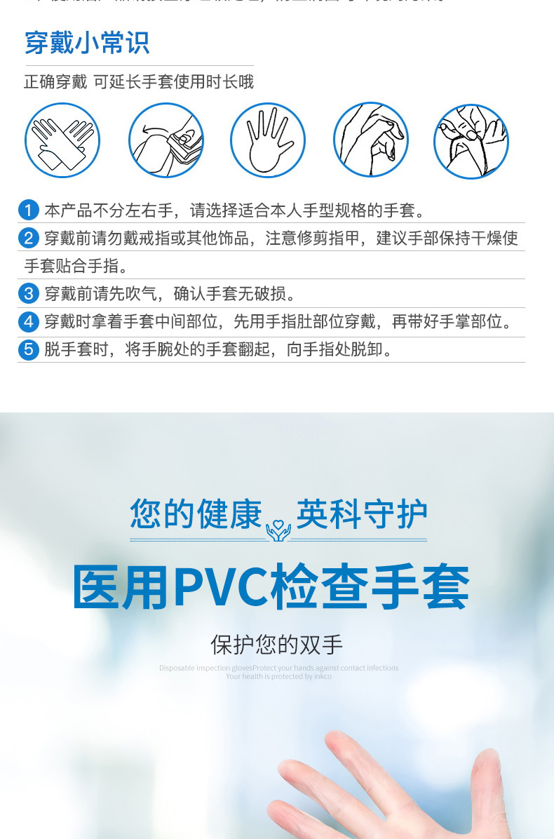 英科医疗 一次性医用PVC检查手套医生专用防护医疗清洁家用手套