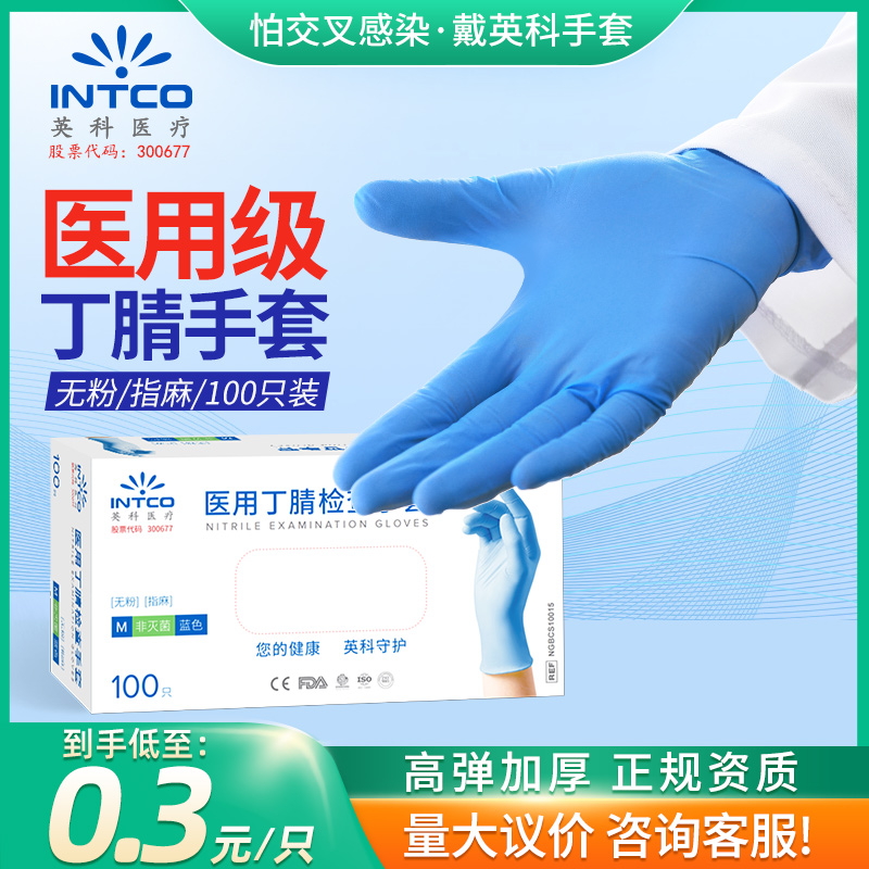 英科医疗 一次性医用丁腈检查手套医生专用家用防水防护