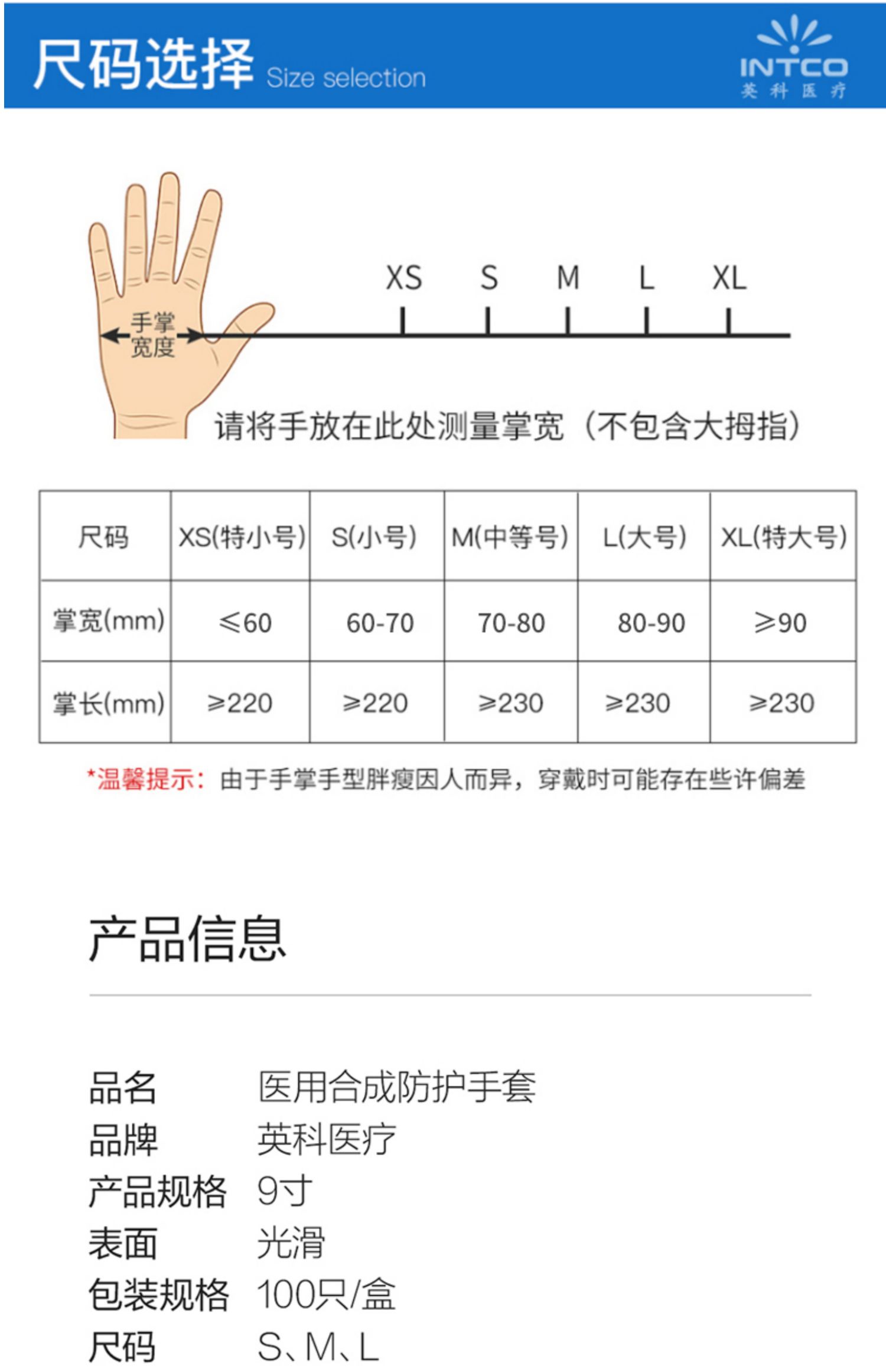 英科医疗 医用手套一次性检查合成医生塑料透明胶防护防水加厚