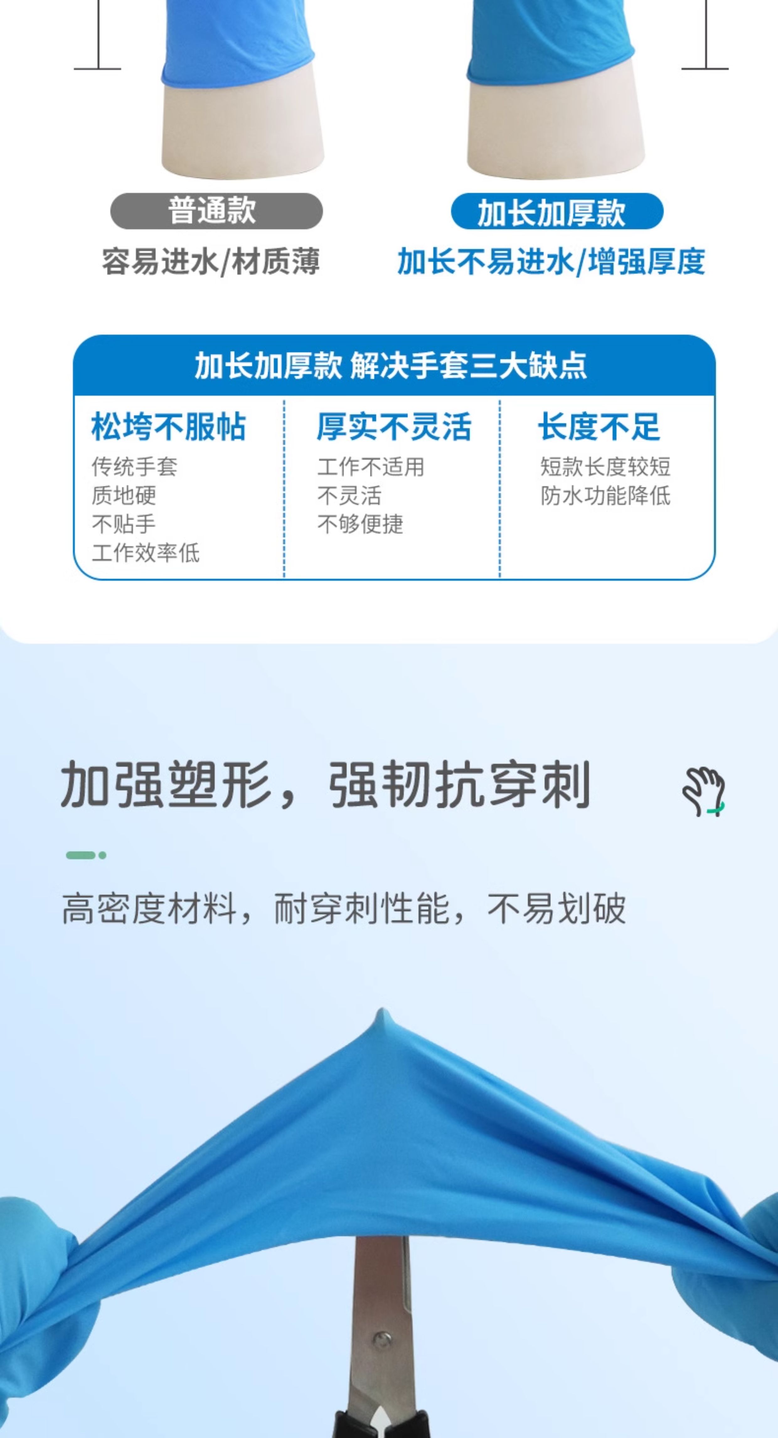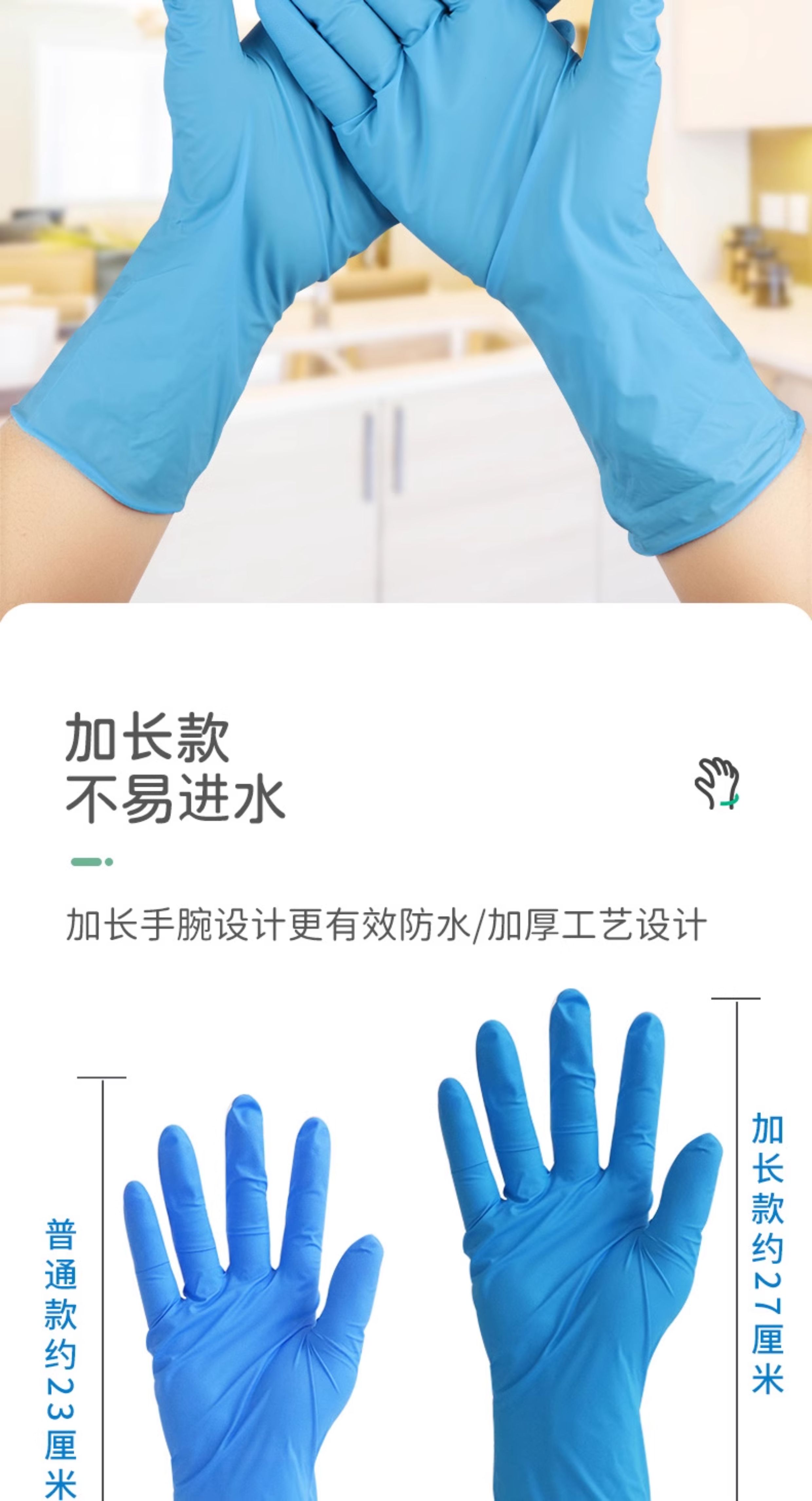 英科医疗12寸医用丁腈一次性手套加长加厚耐油餐饮洗碗防水耐用