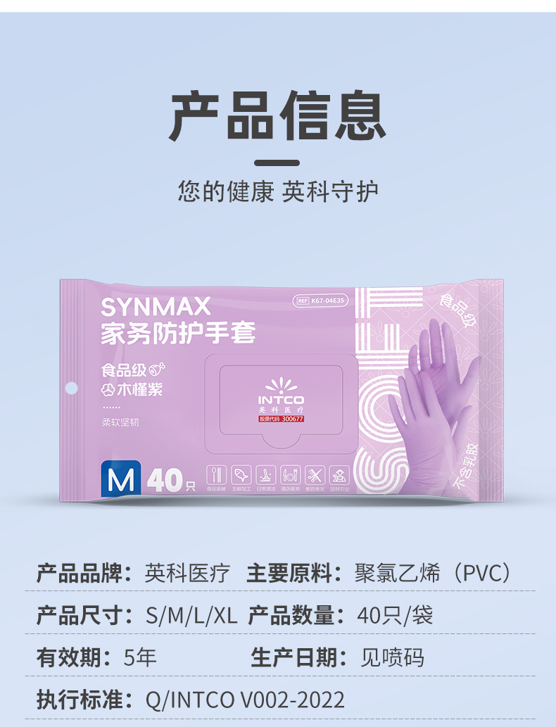 英科医疗一次性PVC手套家务洗碗手套加厚清洁厨房耐用食品级丁腈