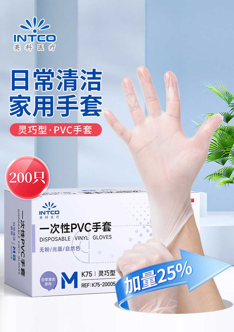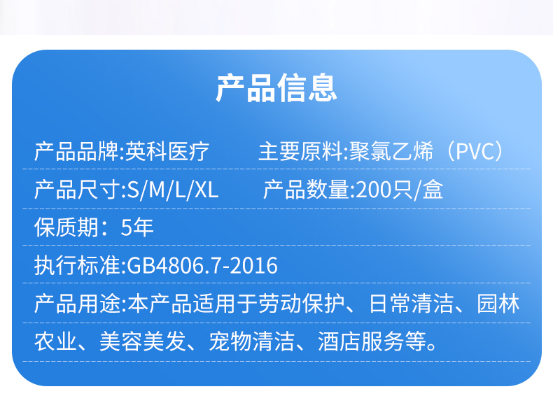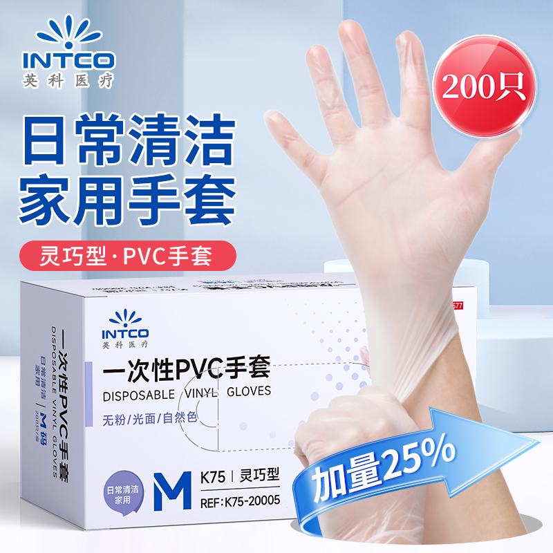 英科医疗一次性PVC手套日常清洁家用厨房防水耐用防护手套