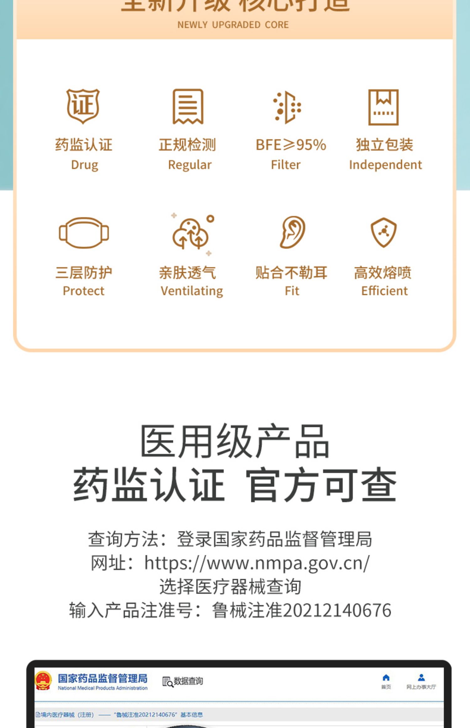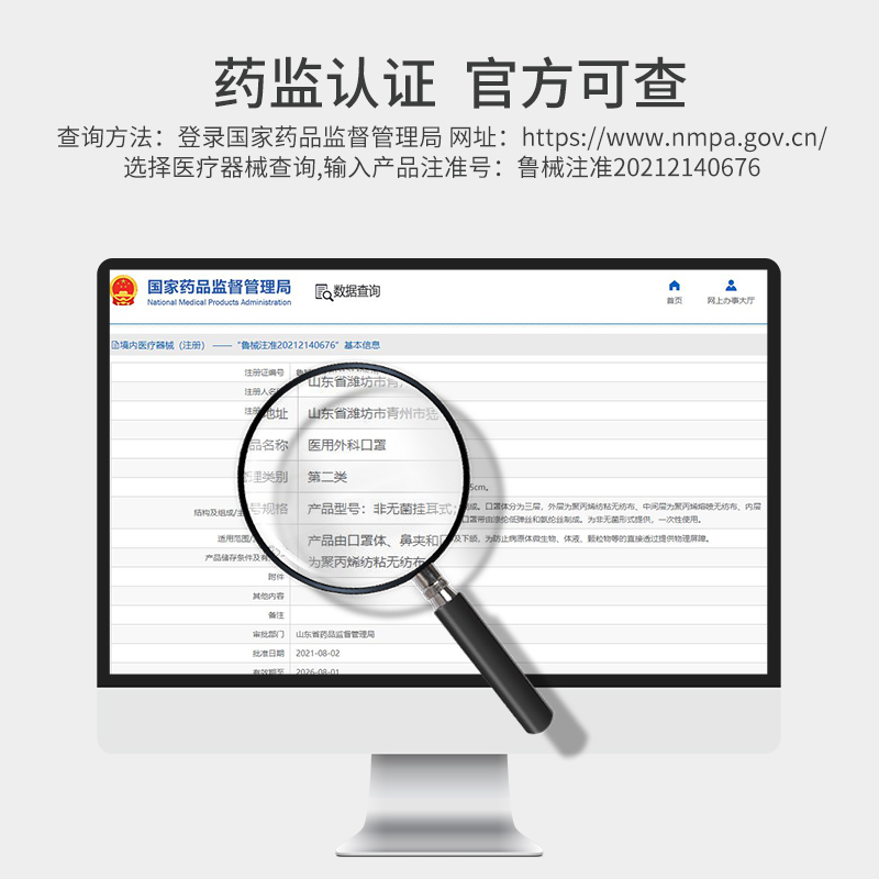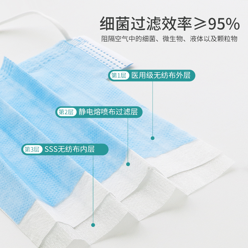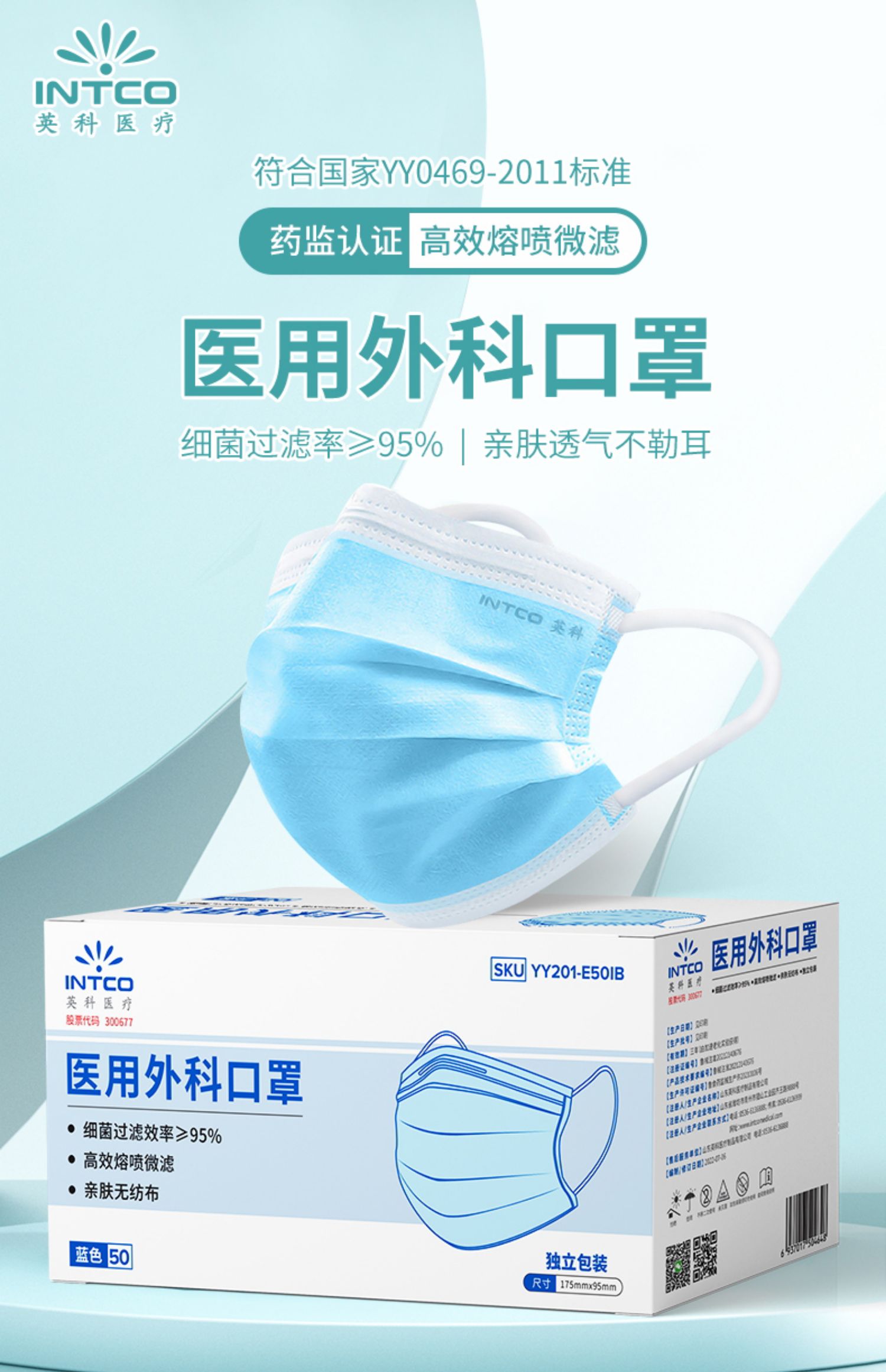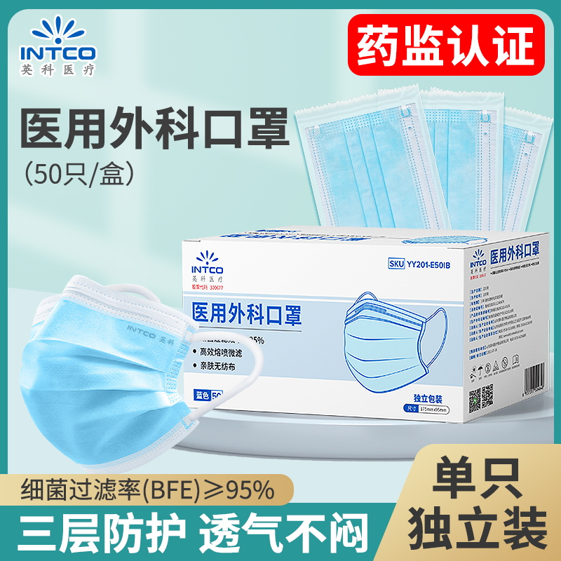 英科医疗一次性医疗口罩三层正品正规医用外科独立装防尘不勒耳