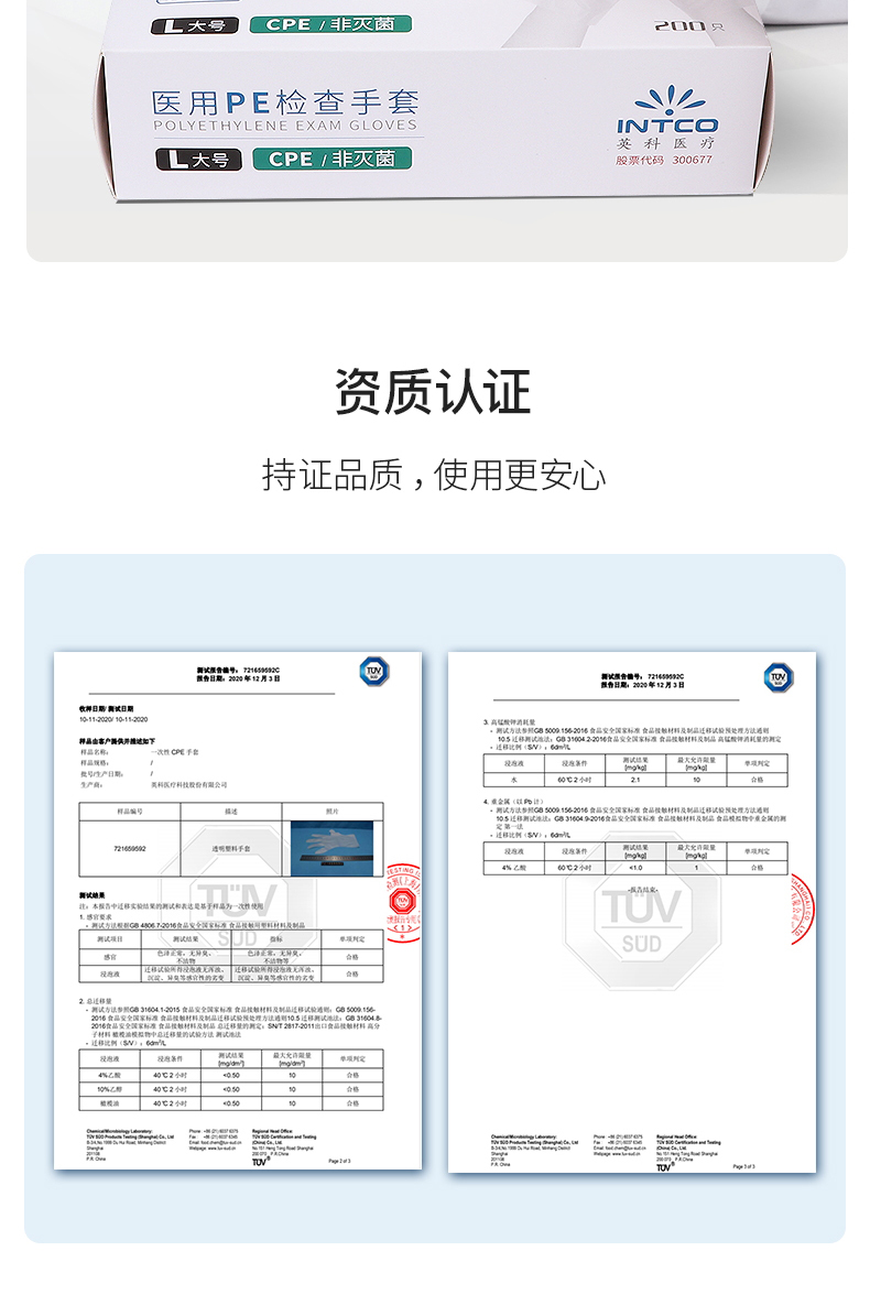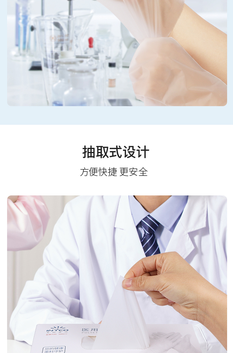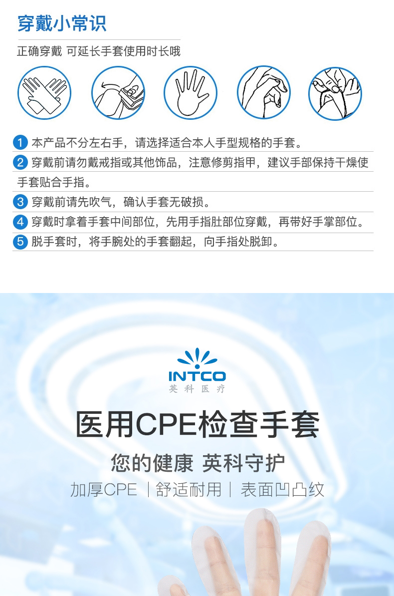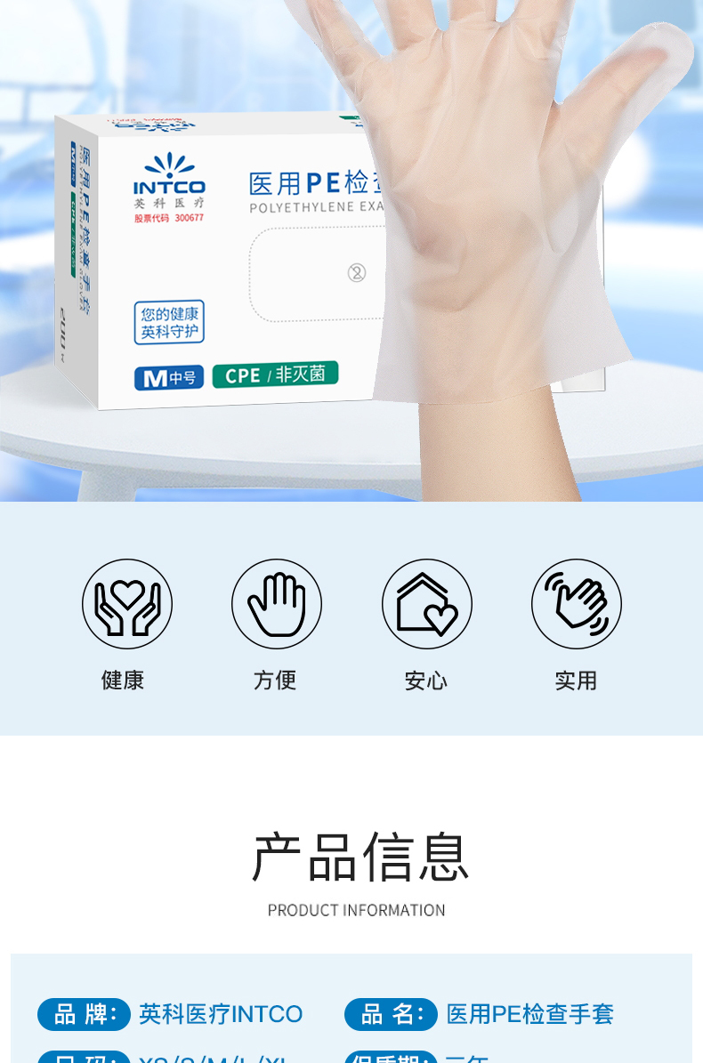 英科医疗一次性医用PE检查手套耐用防护手套家用防护企业采购CPE