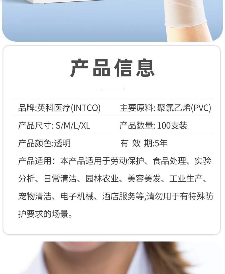 英科医疗一次性医用PVC检查手套丁腈防护材质医生专用防护
