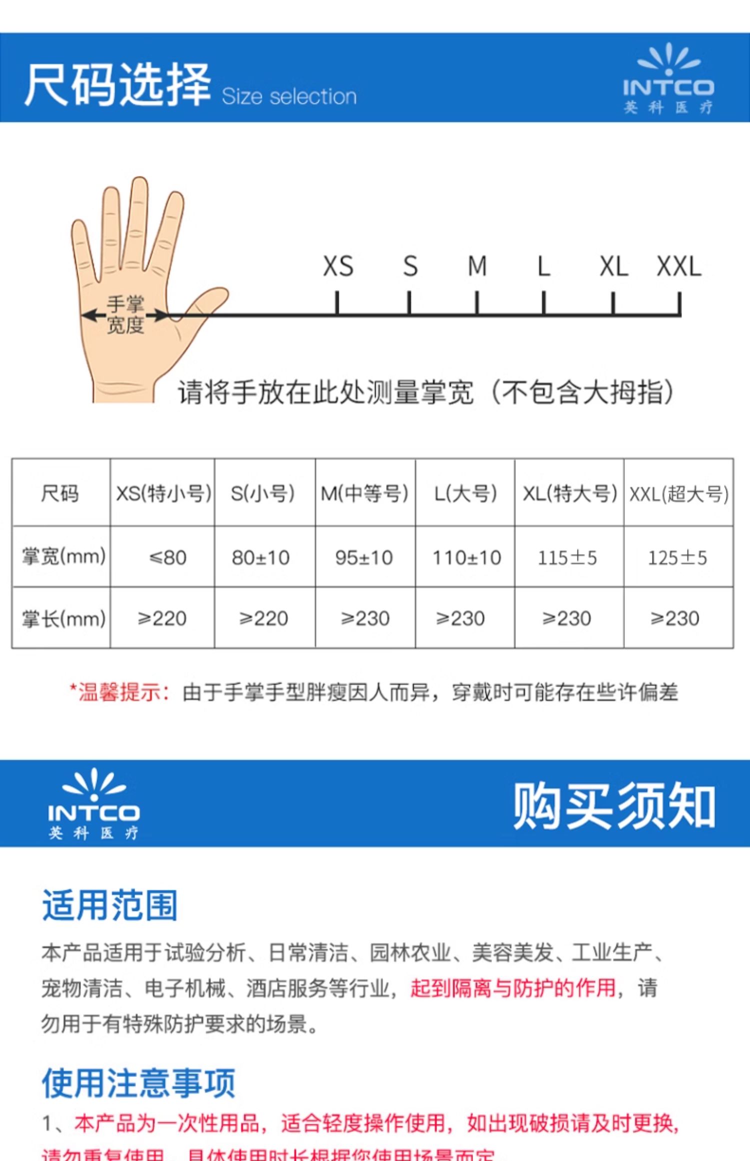 英科医用丁腈手套一次性手套加厚耐用医院手术检查丁晴手套家务