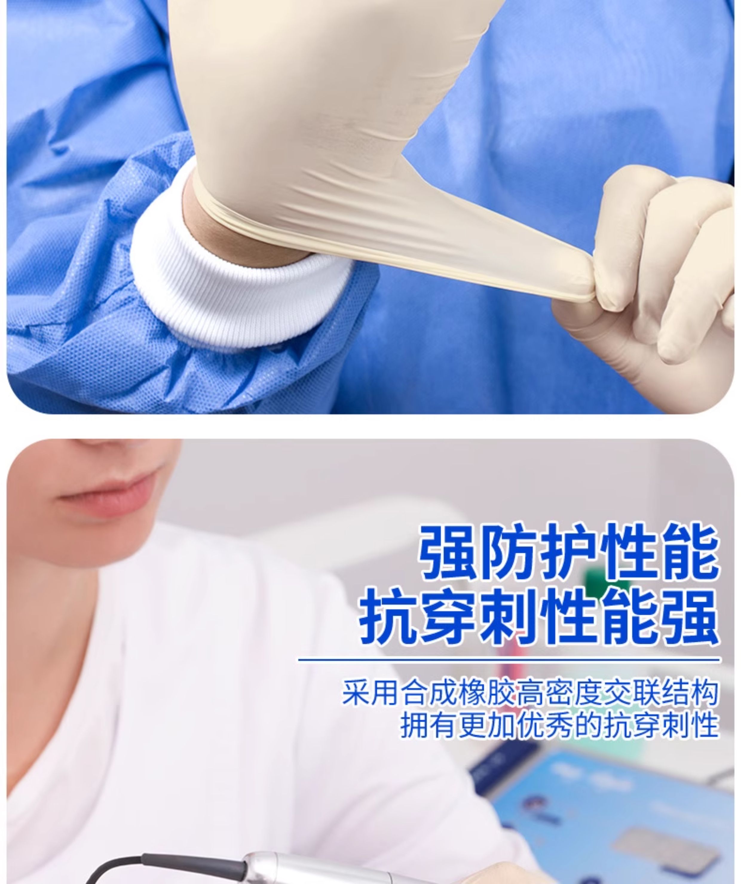 英科医用乳胶手套一次性医生专用加厚胶皮橡胶丁腈实验室